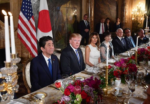 在海湖莊園(Mar-a-Lago)安倍和特朗普一共會談兩天,除了打高爾夫,他們拋給媒體的談資還有,在一次會議上佩戴了相同的領帶(日本媒體報道,這是“意氣相投”的象徵,而且安倍隨後主動更換領帶,以示順從),安倍還拿美國人的胃口開了個玩笑,以及特朗普承諾讓被朝鮮“綁架”的日本人回國。