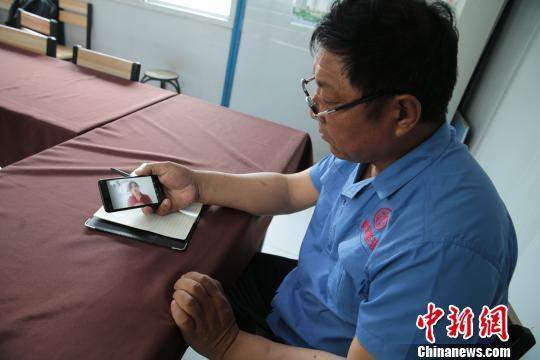 圖為張躍強與女兒進行手機視頻通話。張遠 攝 圖片來自中新網