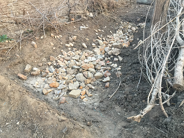 (嫌疑人挖的糞坑裏被扔進上百塊大小不一的石頭,圖源:澎湃新聞)