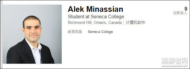 多倫多警方發言人告訴(CBS),該汽車是被警方攔下來的,但發言人沒有透露嫌犯的容貌。當天晚些時候,警方公佈該名嫌犯名叫阿列克·米納西恩(Alek Minassian),今年25歲。美國哥倫比亞廣播公司(CBS)的消息人士證實了米納西恩的照片,這張照片來自他的領英賬户。根據領英資料顯示,他是加拿大安大略省列治文山(Richmond Hill)的塞內卡學院的一名學生。