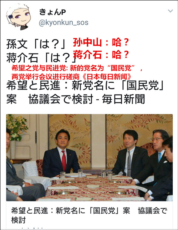 民進黨之後 日本政壇將出現“國民黨”? 台灣網友:太幽默!