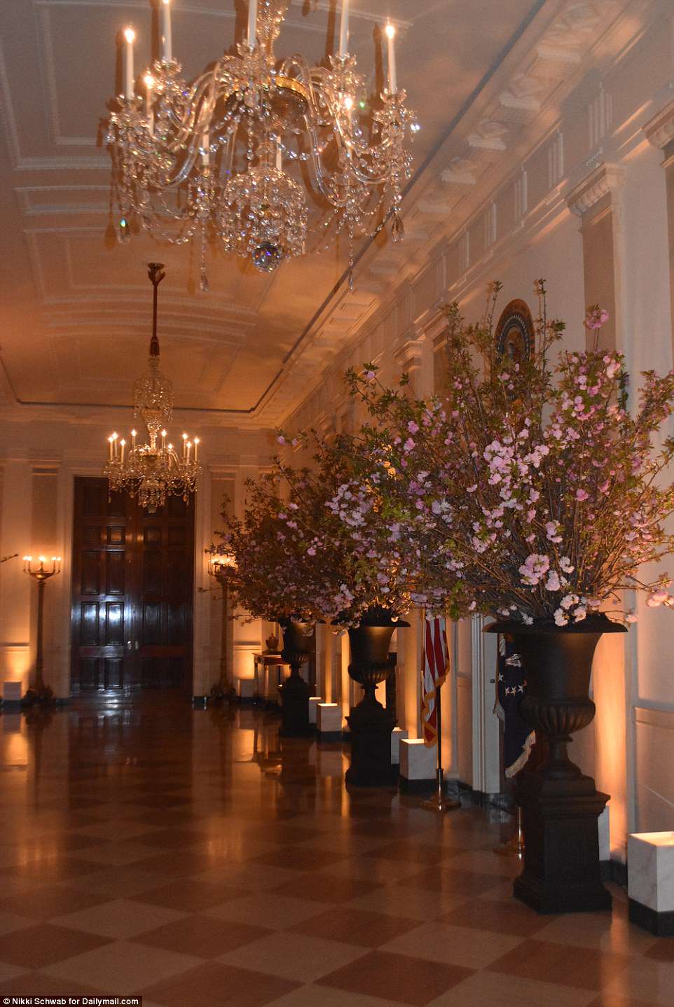 美國《時代週刊》網站4月23日報道,23日晚間,記者們被短暫允許進入國宴餐廳,一睹用餐環境和準備情況。