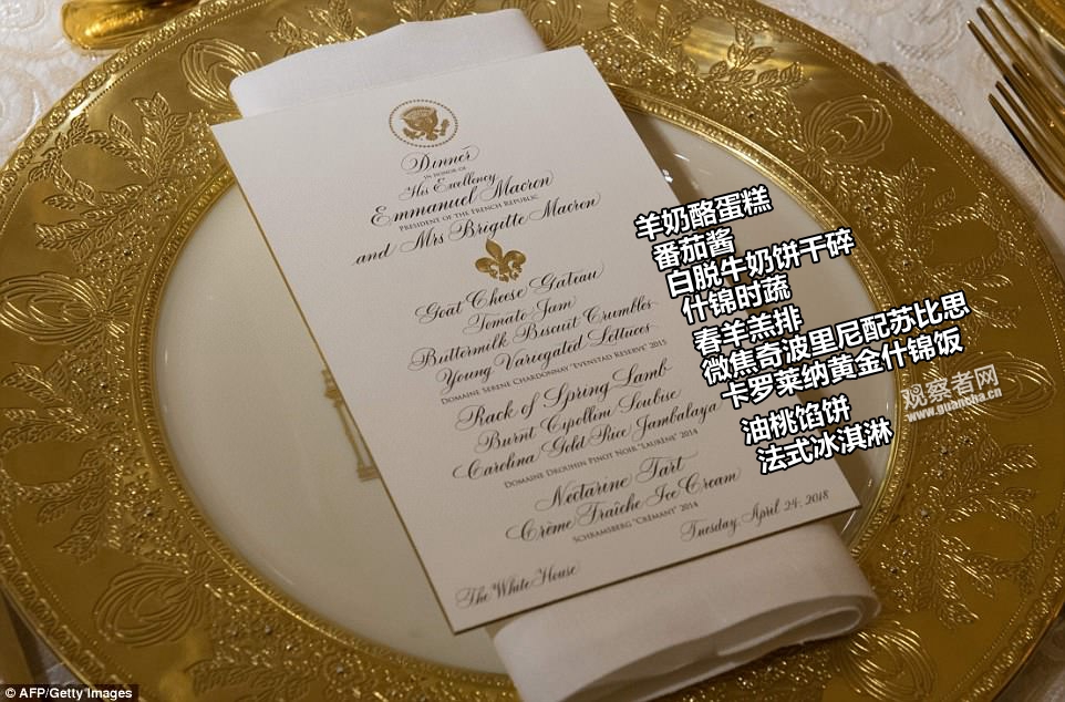 特朗普用土豪金國宴招待馬克龍(附完整菜單)
