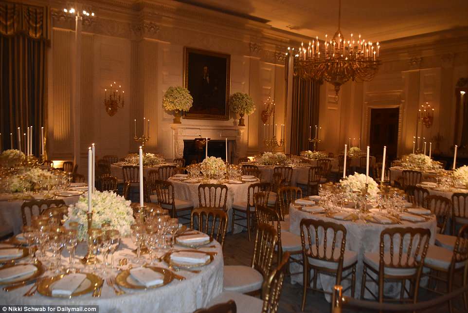 報道稱,她打造每一張金光閃閃的餐桌,用白色和淡綠色的花朵作點綴,並用燭光創造親密氣氛。