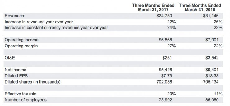 Q1 營收為311.46億美元,比去年同期增長26%,而去年Q1的同比增長率為22%;