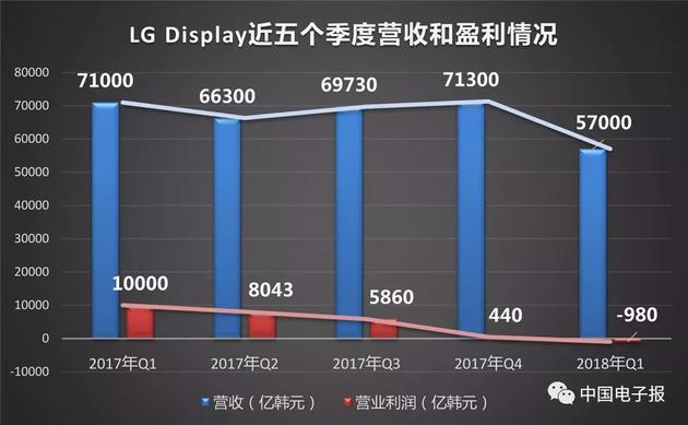 據中國電子報4月26日報道,LG Display昨日發佈的2018年第一季度財報再一次説明了面板行業寒冬正在到來。該財報指出,LG Display2018年第一季度營業虧損達980億韓元,出現近6年來的首次運營虧損。此前發佈的友達光電、京東方財報也説明,受液晶面板價格迅速下滑影響,友達光電、京東方的營收和利潤也出現了同比下跌的現象。從去年第三季度以來,液晶面板價格持續下滑,因為去年6代線、8.5代線等新增產能的逐漸釋放,液晶面板供給不斷提升;而終端市場需求卻不見明顯增長,甚至有的地區已出現下滑,反轉了2016年底到2017年初液晶面板供不應求的形勢。