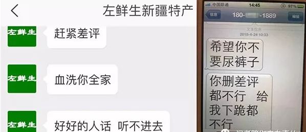 4月25日,鄭州市消費者李海峯(化名)向中國消費者報反映,他在淘寶網名為“左鮮生新疆特產”的店鋪購買了幾包乾果,發現缺斤短兩和瑕疵,在和商家溝通中產生了分歧,幾番交涉,對方火氣越來越大,竟然威脅他**“如果差評,立馬買機票,血洗你全家。”**