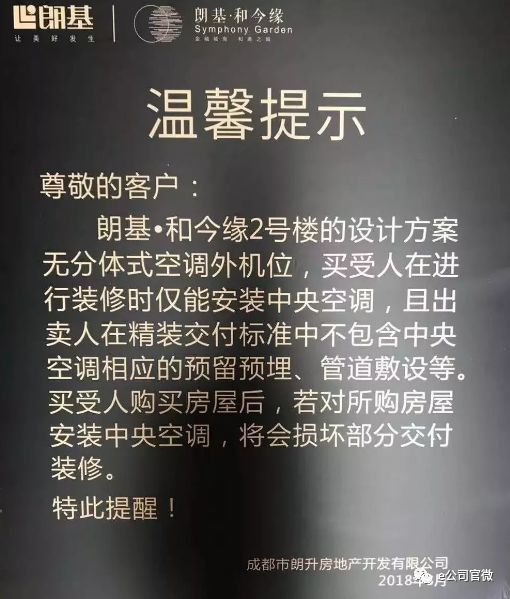 此外,朗基和今緣更明確表示,其2號樓設計方案無分體式空調外機位,買受人在進行裝修僅能安裝中央空調;且賣出人在精裝交付標準中不包含中央空調預留預埋、管道敷設等,買受人若對所購房屋安裝中央空調,將會損壞部分交付裝修。需要指出的是,按照朗基和今緣所披露的資料顯示,這棟樓每套房裝修報價可都在30萬元以上。