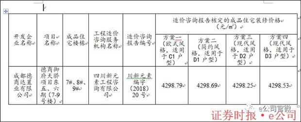 證券時報·e公司記者瞭解到,位於成都天府新區的德商御府天驕已拿到預售許可證,共計推出442套房源,清水房均價在13000元/㎡左右,但其給出的裝修價格達到4300元/㎡。