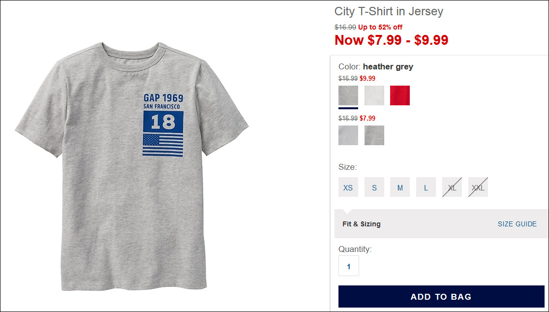 在“Gap Factory”官網上, 這款T恤的售價是7.99—10.99美元,摺合人民幣50—70塊。