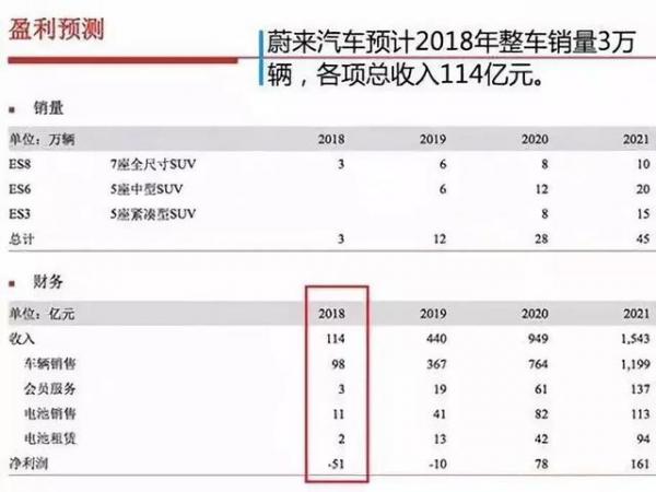 之前,網絡上流出蔚來汽車一份內部文件,文件顯示蔚來今年計劃售出新車3萬輛,總收入114億元人民幣,盈利預計虧損51億元,並對未來三年的銷量和收入進行了預估,其中2019年預計虧損10億元,2020年則預能計實現盈利,並有78億元的淨利潤。但按目前的情況來看,蔚來已經完成五輪融資,共計146億元左右。