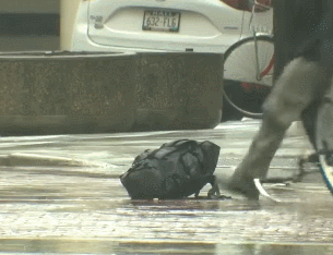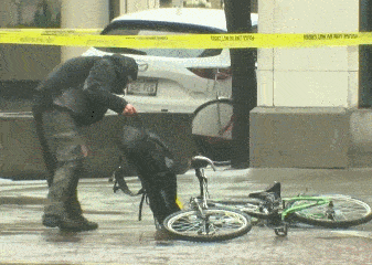 就在警方考慮下一步該如何進行時,一名騎自行車的男士突然衝進警戒線,打開包裹,把所有的東西都翻了出來。