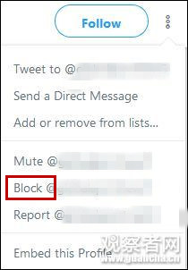 推特中的“拉黑”鍵 本文圖片均截自推特