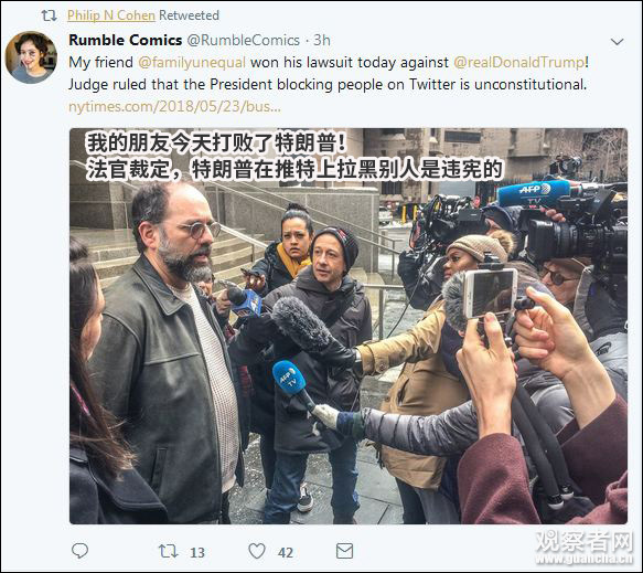 話説,法院的這一裁定,還得從特朗普的推特“拉黑鍵”説起。