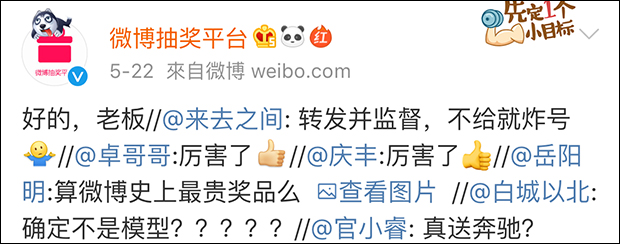 目前,這條轉發抽獎已經引起了微博官方平台的關注,連CEO都發話表示要監督到底!