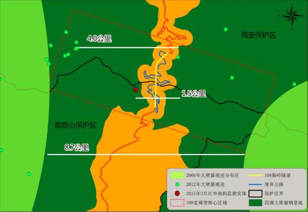 據悉,除了雅安當地,**108國道也南北縱向穿越秦嶺腹地,將該區域的野生大熊貓種羣分割為東部的天華山與西部的興隆嶺兩個局域種羣,阻斷了它們之間的基因交流。**1999年,秦嶺隧道建成通車,原隧道上方翻越山脊的13公里公路棄用,為了使兩個局域種羣與恢復連通,自2005年開始,上述兩家機構合作利用棄用的公路來建設大熊貓走廊。