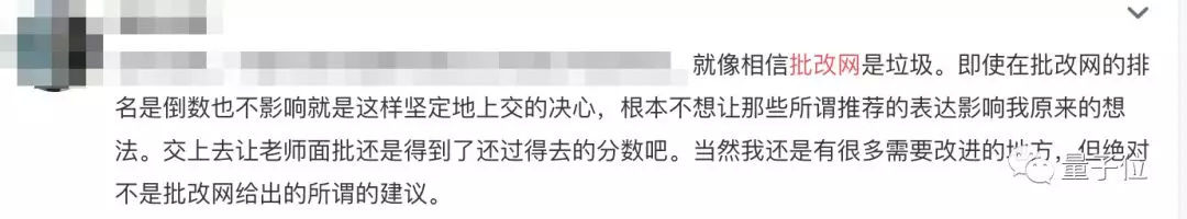 “就像相信批改網是垃圾。即使在批改網的排名是倒數也不影響就是這樣堅定地上交的決心”