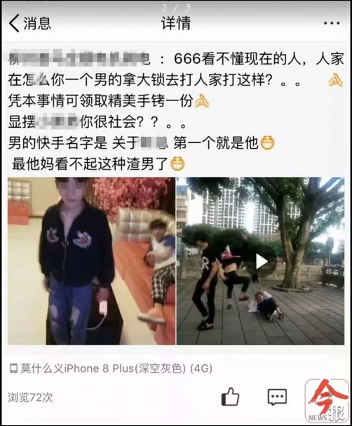 網傳柳州兩男生用鐵鎖頭毆打一女生 警方:打人者系社會青年
