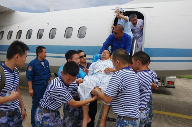 經過幾天的對症治療,病人病情已基本穩定。鑑於島上醫療條件有限,為防止病人再次出血危及生命,醫生建議轉院,施工單位隨後向部隊申請飛機緊急救援後送治療。