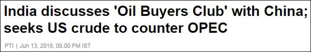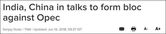 一位匿名的印度政府官員13日稱,兩國希望聯合以對OPEC構成壓力,使油價得到控制。兩個買家潛在合作將給OPEC帶來另一個挑戰,即要面對墨西哥灣和德克薩斯頁岩油田大量流入亞洲市場的競爭。