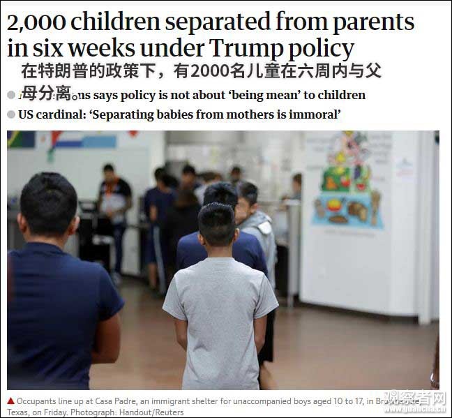 據英國《衞報》當地時間6月16日報道,由於特朗普政府打擊非法移民,6周內,大約有2000兒童在美國南部邊境與其監護人分開。