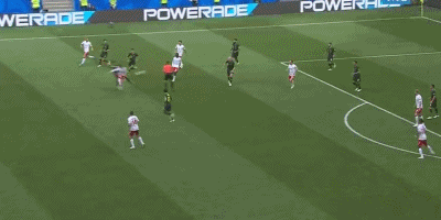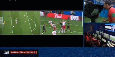 第37分鐘,主裁判在經視頻裁判組提醒後觀看了VAR,發現丹麥球員波爾森在防守澳大利亞球員萊基的頭球時有手球動作,主裁判給了波爾森黃牌,並給澳大利亞一個點球。