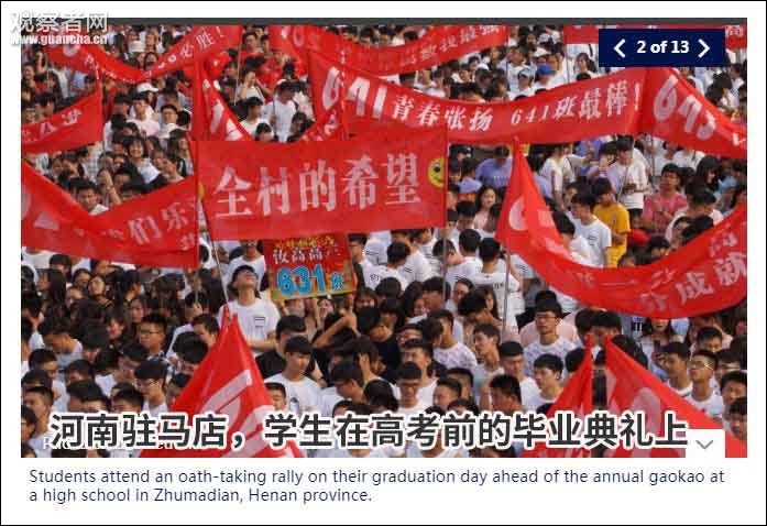 “在中國,高考是殘酷的競爭。高考十分艱苦,而通過一個考試來判斷一個人在過去十多年的學習成果,是不合理的。”