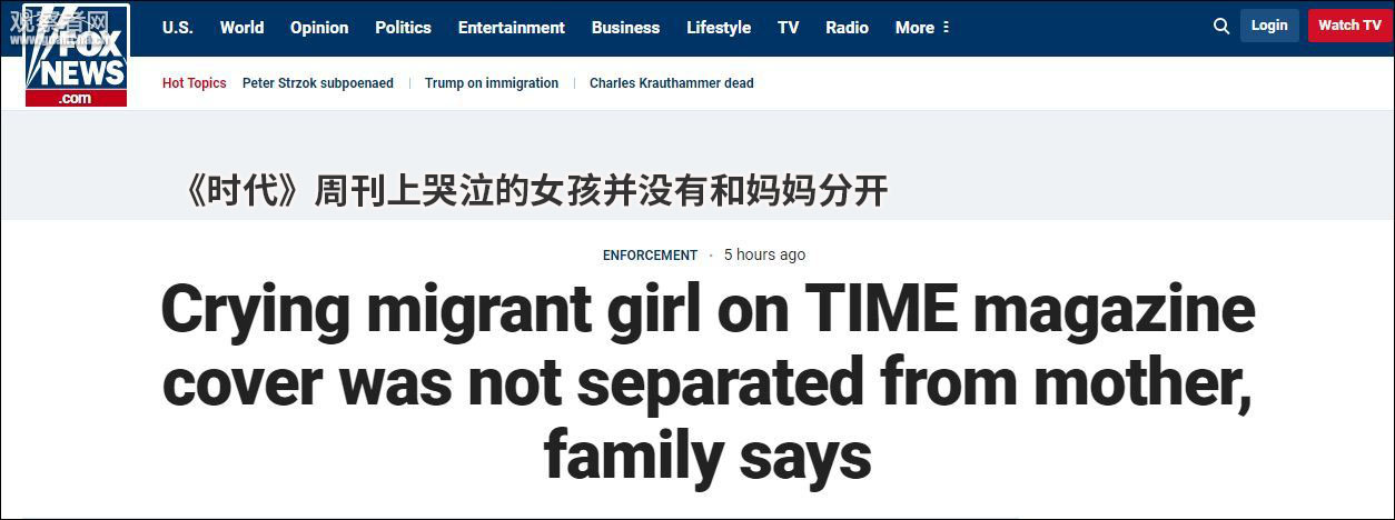 特朗普最喜歡的親共和黨媒體福克斯(Fox)表示,這一週,備受爭議的“零容忍”政策事件持續發酵,而這張被錯誤解讀的照片,又被捲入了這場輿論風波中。