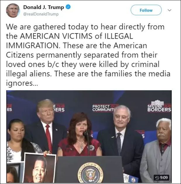 當地時間22日,扳回一局的特朗普和他的團隊專門請來了一批被非法移民殺害了至親的合法移民家庭,請他們對着自己的鏡頭講述了他們的悲痛故事和對非法移民問題的痛恨。而且特朗普還特別強調説:這些家庭恰恰是被美國主流媒體所刻意忽視的……