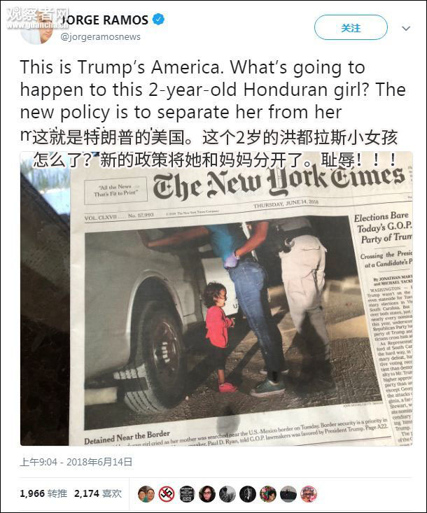 雖然邊境上確實有“骨肉分離”的情況,但小女孩與母親並非完美的代表,這也讓飽受壓力的美國政府獲得喘息,立即開始反擊主流媒體。