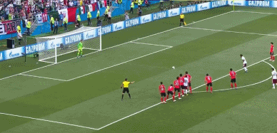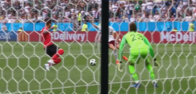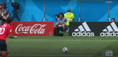 本場比賽第24分鐘,墨西哥邊鋒安德烈斯-瓜爾達多左路橫傳給到禁區,皮球擊中前來協防放鏟的張賢秀手上,主裁判吹罰點球。