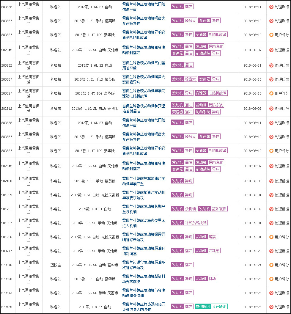 可要知道,在這之前,只要在網上以“科魯茲變速箱故障”為關鍵詞搜索,結果能搜出來滿滿70來頁的“控訴”,均針對變速箱問題,有變速箱引起自燃的、變速箱“爆裂”的、變速箱漏油的、變速箱異響的等等,怨聲載道。