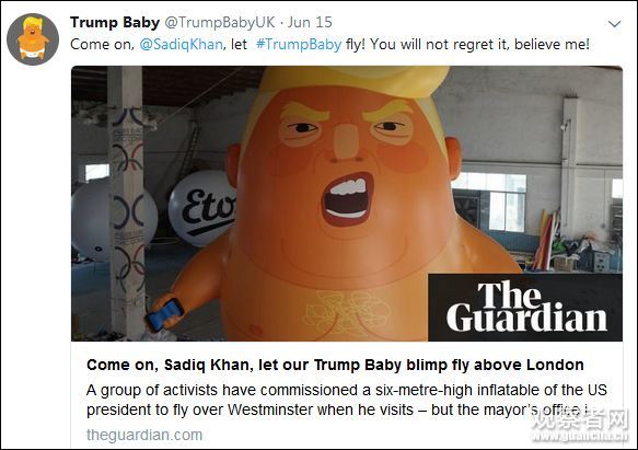 拖了近一年半的特朗普英國之行,終於要來了。不知道,“特朗普寶寶”能不能飛……