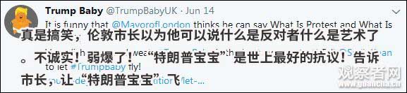 對,“特朗普寶寶”擁有自己的推特賬號。信息顯示該賬號註冊於今年1月,地址美國駐英國倫敦大使館,坐擁2千多推特粉絲。