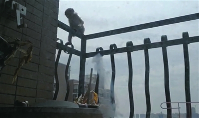 小猴子在23樓外陽台護欄上來回溜達(視頻截圖)