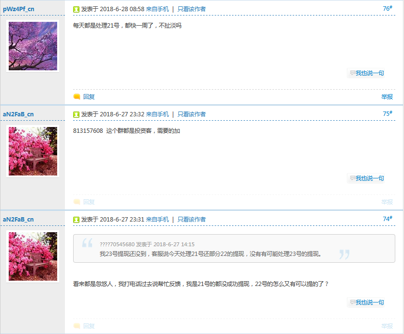 該公司官網已於6月2日發佈提現延遲公告,預計未來1-2個月內都會有部分客户提現存在T+1到賬情況。