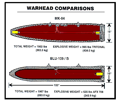 BLU-109(下)與常規MK.84炸彈(上)的對比