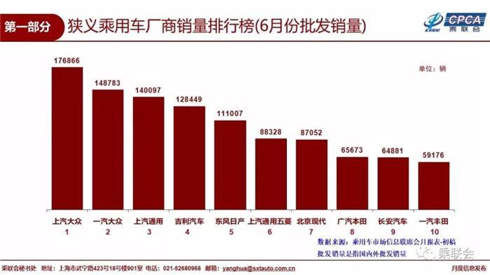 回到銷量數據上,合資版塊,6月份的上汽大眾、上汽通用等增速整體有所減緩。