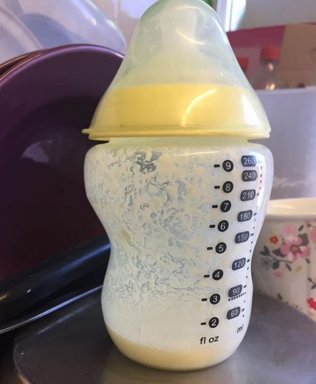 新配方奶粉在奶瓶中結塊,《曼徹斯特晚報》圖