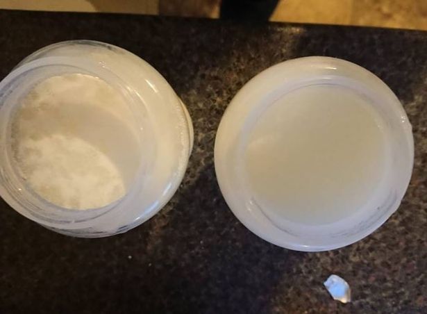 父母稱新配方(左)會出現結塊問題,《曼徹斯特晚報》圖