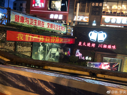 門前甚至拉起了橫幅,可以説戲很足了。