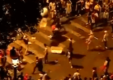 連公交車,都似乎是為狂歡“而生”。人們爬上車頂,瘋狂蹦迪!