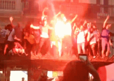 為慶祝勝利,法國球迷在公交車頂蹦迪