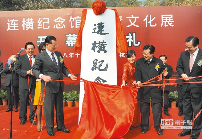 圖為2008年12月18日連戰在杭州出席“連橫紀念館”開館儀式。