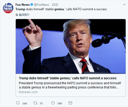 能自誇是天才的政要,不用問,肯定是美國總統特朗普。他已經不止一次如此評價自己。而剛剛的這一幕發生在布魯塞爾北約峯會記者會上。