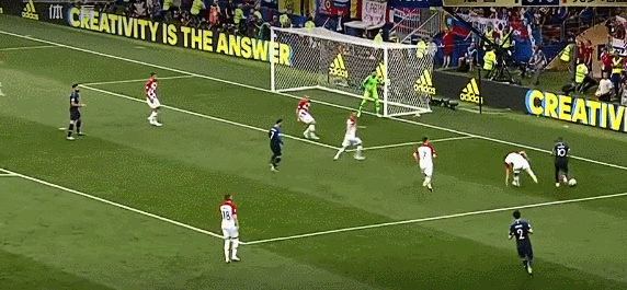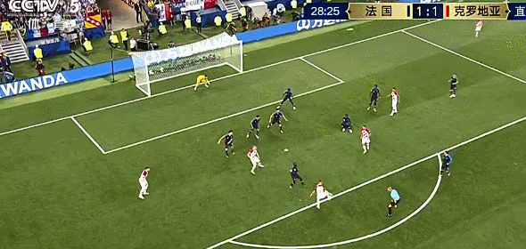 第17分鐘,法國隊才首次殺入到克羅地亞隊的腹地