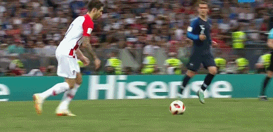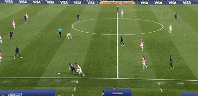 開場前15分鐘,克羅地亞展現了相當強的進攻慾望。兩個邊雷比奇和佩裏西奇在和兩個邊後衞套邊配合之後,壓制住了法國隊的帕瓦爾和埃爾南德斯,對中場的博格巴和坎特形成了圍搶。