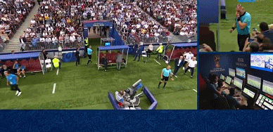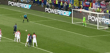 第38分鐘,在世界盃決賽歷史上,我們見證了首次由VAR幫助裁判判罰點球的案例。