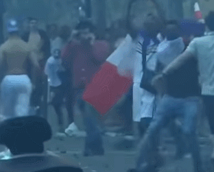 從現場拍攝的視頻可以看到,當防暴警察進入現場時,鬧事者穿着法國隊球衣和戴着面罩攻擊警察。