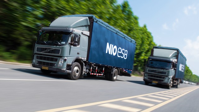 從圖片中可以看到,蔚來這次選擇的運輸物流車輛,並不是傳統板車,而是封閉式卡車。車輛體積來看,單次運輸的車輛數量顯然不及大型板車。對此,李斌解釋説:“這個是給量小的城市發運的。如果是量的城市,也會有大的板車。”